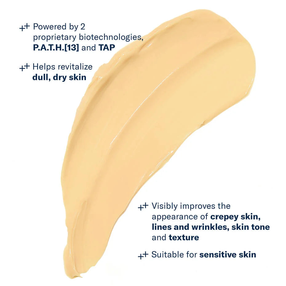 - Formulated with P.A.T.H.[13] and reenergizing TAP technologies to revive, rebalance, and restore skin’s natural luminosity and youthful appearance.